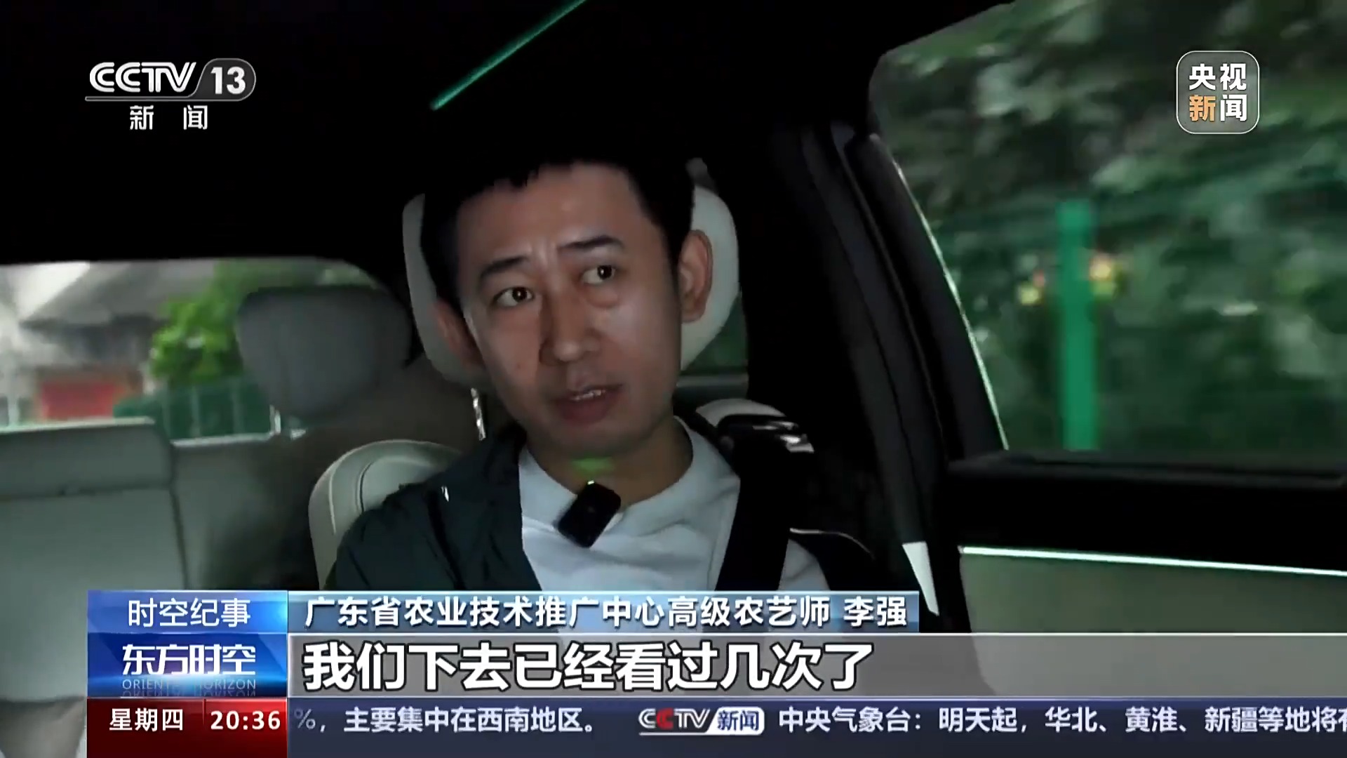农户种植出现问题,省里派专家和当地农技特派员大伙一起到田头研判,是广东这几年一直坚持的解决农业问题的方法。从广州市区驱车一个半小时,见到的第一个人不是果园的主人,而是驻扎在增城的农技特派员廖美敬,她一大早就来了这,等不及跟我们会合,就先进园子里查看这里果树受损的情况。