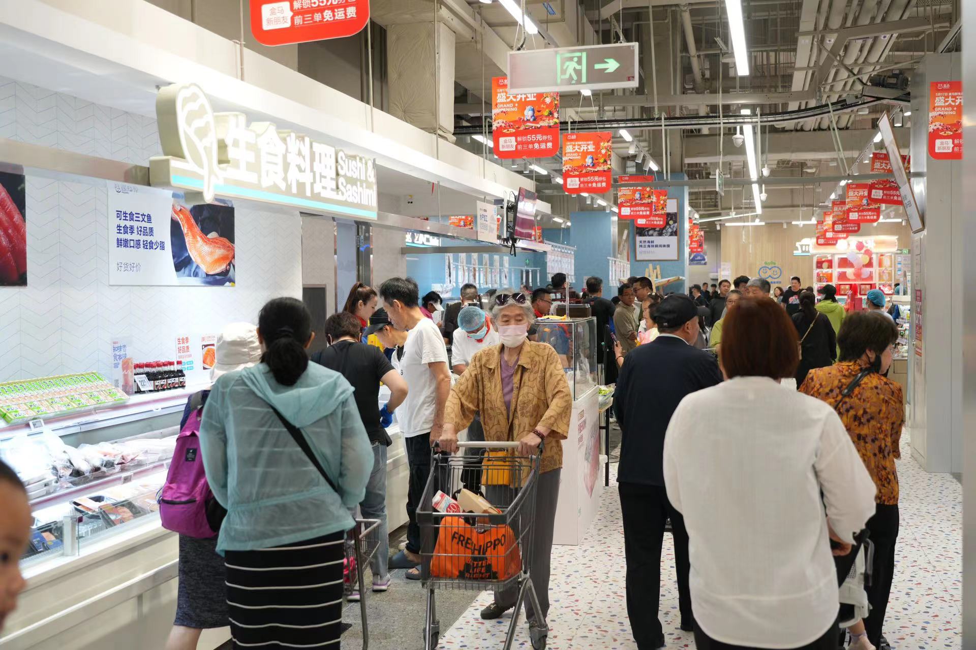 记者走访看到,来超市购物的不仅有上班族,也有老年人,还有一些外国面孔,顾客们对高品质民生商品需求旺盛。工作人员介绍,开业两小时,三文鱼切片就卖出了近百盒,适合外带的烤串也颇受欢迎。考虑到周边写字楼林立,办公人群较多,店里还增加了简餐和下午茶品类。