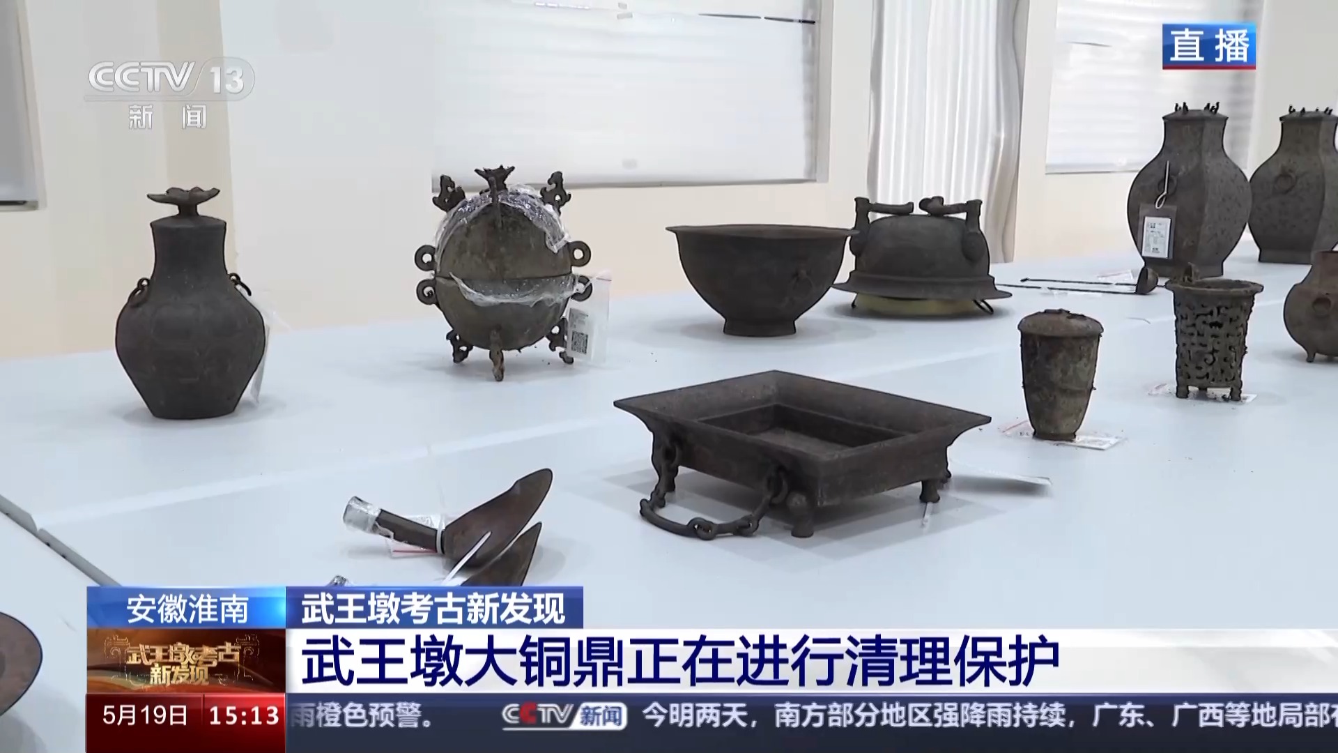 武王墩考古实验室负责人 张治国:武王墩出土的青铜器主要出土于东一室,还出土了各类其他铜器150多件/组,包括烹煮器、盛食器、盛酒器、盥洗器、挹注器等,类型非常丰富。