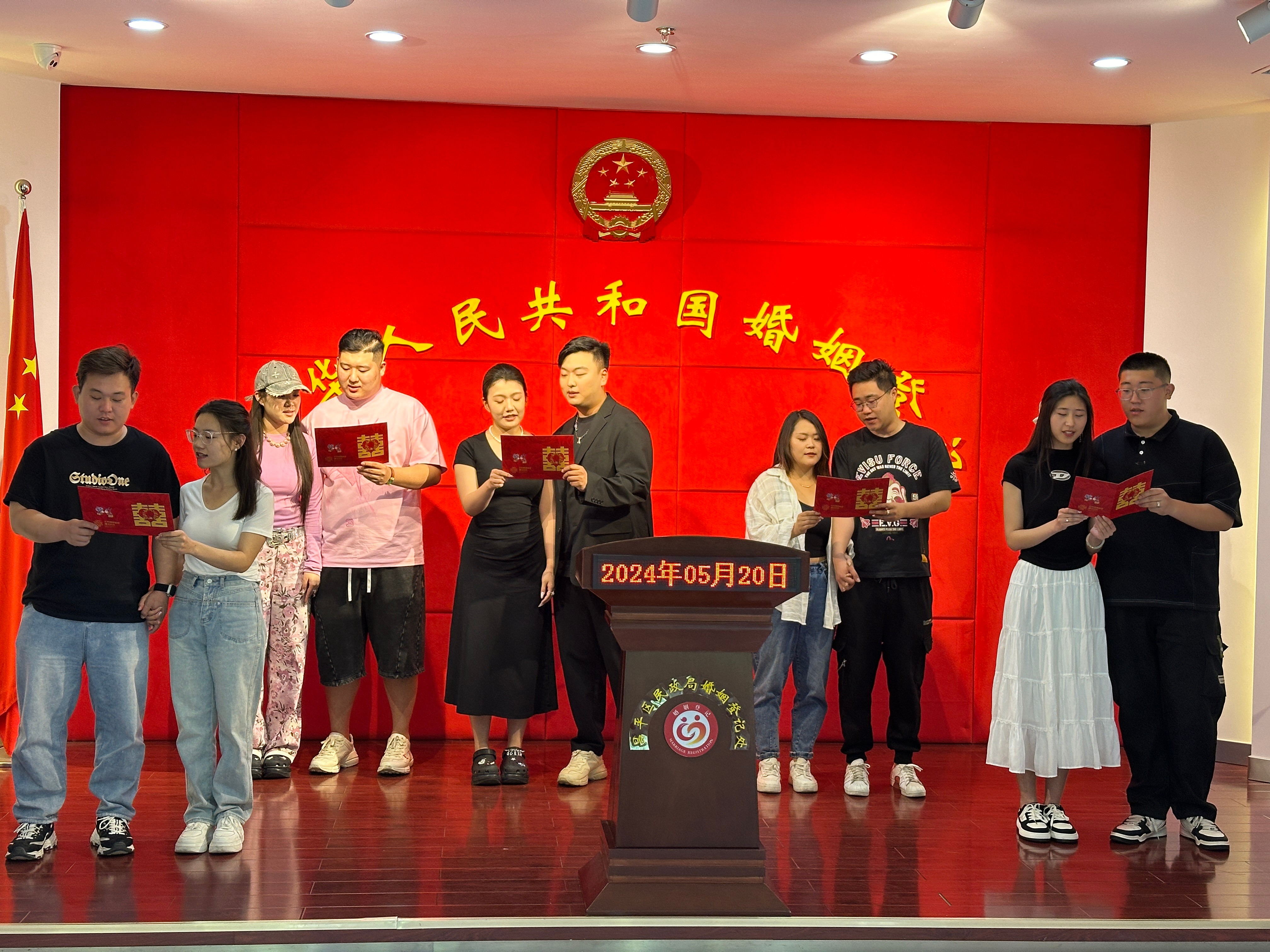 “今天的日子寓意很好,不仅是‘520’谐音‘我爱你’,今天在中国的节气里是小满,有一句话叫人生小满胜万全,所以我觉得今天不只是因为‘520’的缘故,更是因为小满的日子,所以才让我们选择今天来领证的。”现场办理登记结婚的新人幸福的说,“我们相识12年,彼此陪伴成长,美好的爱情在今天终于有了答案。”