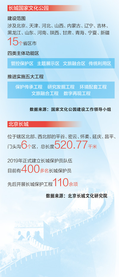 随着长城国家文化公园建设推进,各地不断创新长城保护方式,长城的保护状况持续改善。2019年,中办、国办印发《长城、大运河、长征国家文化公园建设方案》。2021年,国家文化公园建设工作领导小组印发的《长城国家文化公园建设保护规划》提出,着力将长城国家文化公园打造为弘扬民族精神、传承中华文明的重要标志。