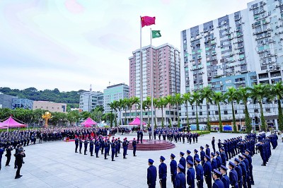 2023年12月20日,澳门特区政府在金莲花广场举行升旗仪式,庆祝澳门回归祖国24周年。新华社发
