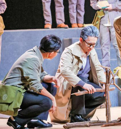 科学家精神宣传系列活动在澳门举行。图为2023年10月30日,演员在表演话剧《大地之光》。新华社发