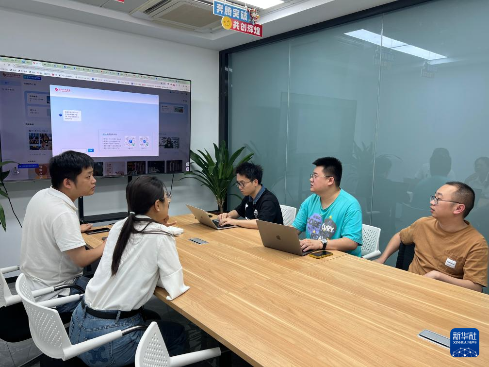 5月17日,Chinagoods公司的产品和技术团队在探讨AI应用优化方案。新华社发