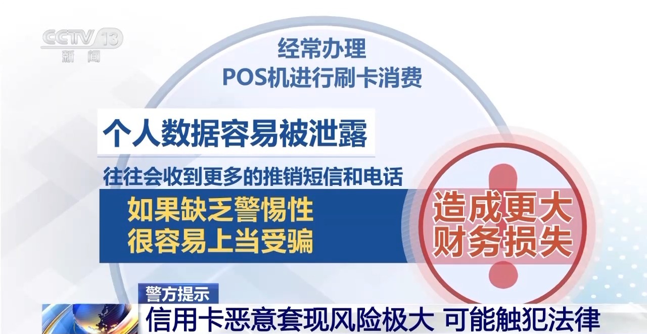 据警方介绍,用信用卡恶意套现,不仅风险极大,还有可能触犯法律。