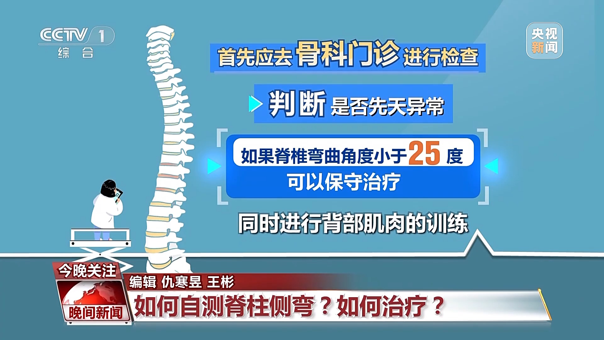 专家表示,首先应去骨科门诊进行检查,判断是否先天异常。如果脊椎弯曲角度小于25度,可以保守治疗,同时进行背部肌肉的训练。如果脊椎弯曲角度在25度到40度,则需要借助矫正工具治疗。