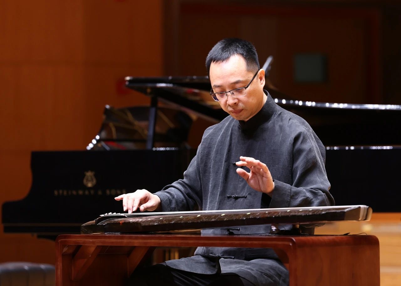 第三天,北京音乐厅“国乐初心”系列演出再次上新。古琴、胡琴演奏家张旭光联袂好友张荣鑫、李莉、王崇武、张诗乐,将箫、竖琴、大提琴、钢琴一起搬上舞台,东西对话,古今相融。张旭光特地带来了中国广播艺术团收藏的宋代名琴“辩梦”,由它奏响的名曲《平沙落雁》悠远辽阔,宕开整场演出的疏朗意境,接下来,《渔樵问答》《梅花三弄》《酒狂》等闻名于古籍中的作品相继上演。中国胡琴家族中的4种胡琴二胡、高胡、板胡、京胡也逐一亮相,带来《二泉映月》《平湖秋月》《夜深沉》等名曲,或婉转深邃,或热烈磅礴,弓弦摩擦之间,胡琴的非凡音色令人过耳难忘。