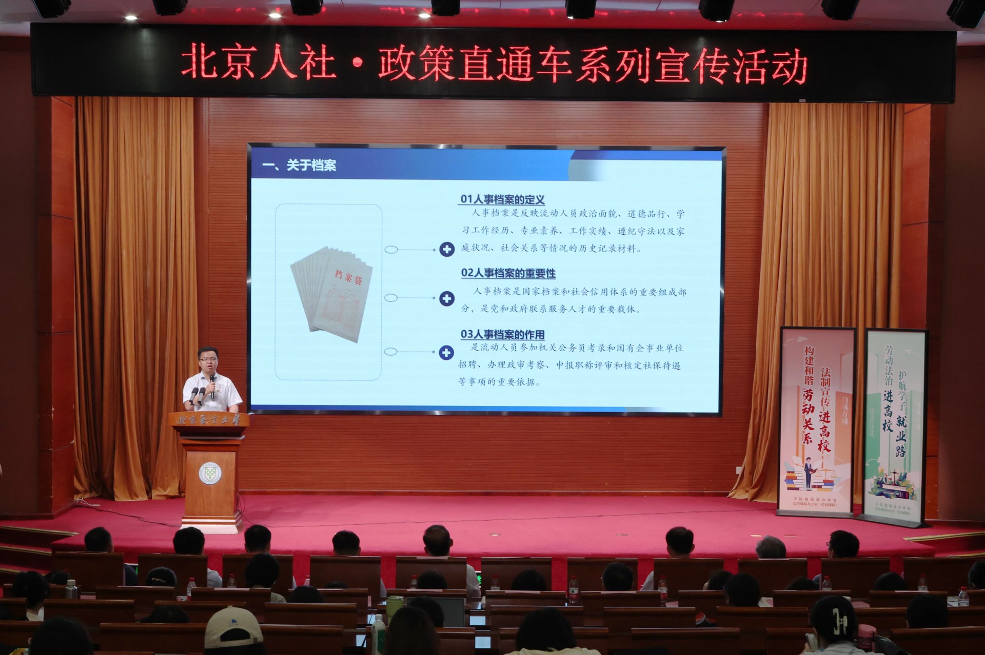 海淀区公服中心的工作人员还为同学们介绍了毕业生档案相关内容,详细介绍了毕业生档案的建立、管理和使用等方面的知识,帮助毕业生们更好地了解自己的档案情况,为未来的职业生涯做好充分准备。活动中,还围绕劳动用工及档案实践问题举行了有奖问答,同学们积极参与,现场气氛热烈。