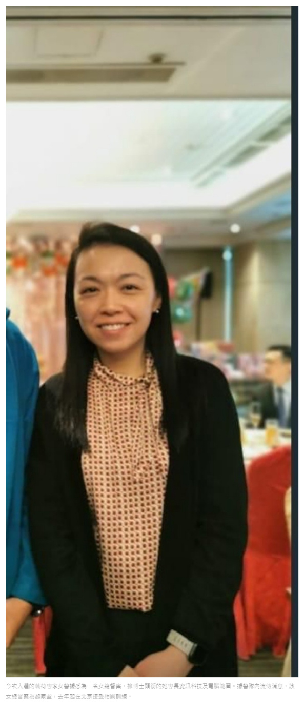 港媒透露,有消息称,一名女警最终入选成为载荷专家,是一名女总督察,博士学历,专业是信息科技及计算机方面,加入警队后一直在特别部门工作。据香港警队内流传的消息,该女总督察为黎家盈,她从去年起就在北京接受相关训练。