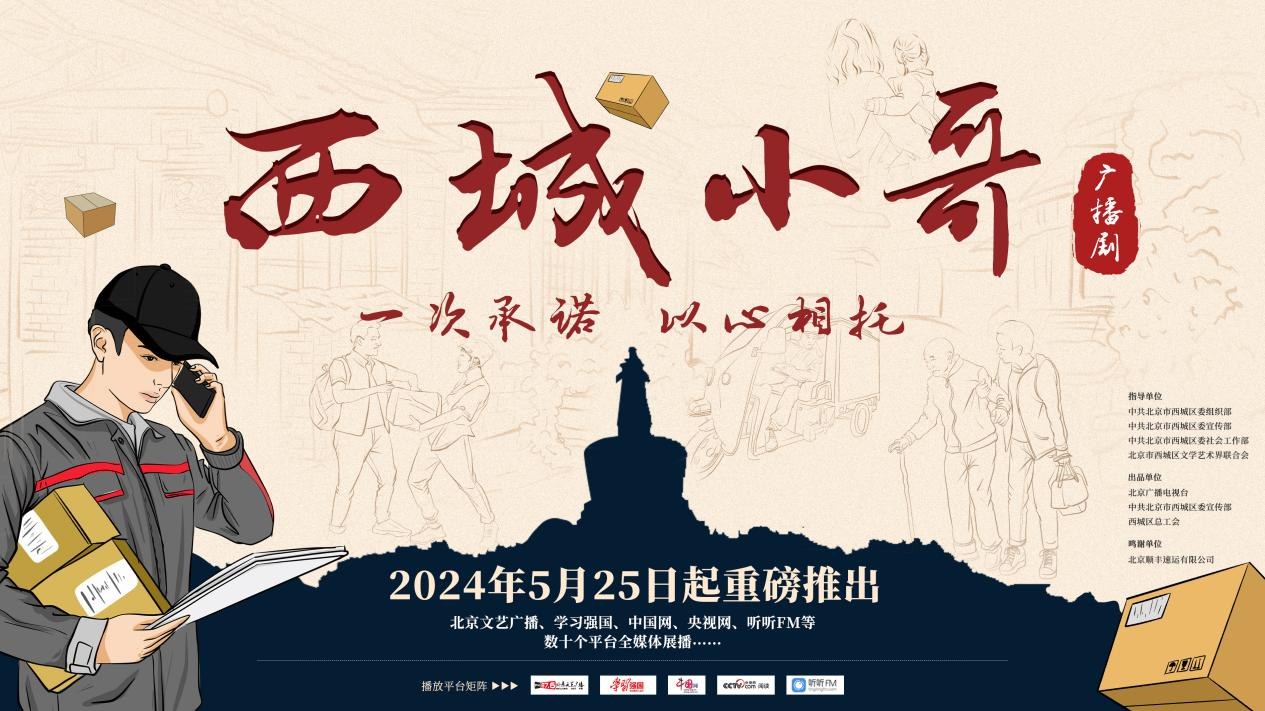 自从有了“西城小哥”的加入,西城辖区这几年一直是“发案少,秩序好,社会稳定,群众满意”。由北京广播电视台、中共北京市西城区委宣传部和西城区总工会共同出品的广播剧《西城小哥》,生动再现了北京市西城区某快递网点陶朗、孟章、晓宇等快递员派发快递过程中与居民梁大爷、鲍珊、王阿姨等所引发的一系列故事。社区情、同事情、亲情友情,用情感力量打通基层民众生活,在情节、人物、冲突之中娓娓道来一系列与当下观众产生情感共鸣的动人故事。该广播剧共三集,每集30分钟,5月25日起,在北京文艺广播、学习强国、央视网、中国网、听听FM等数十个平台全媒体展播。