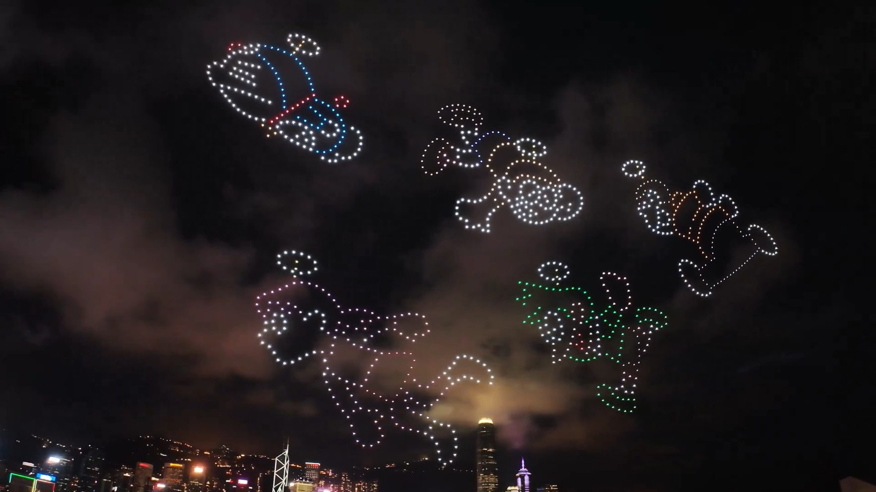 昨晚(25日),全球首次以卡通人物为主题的无人机会演在香港维多利亚港上演。