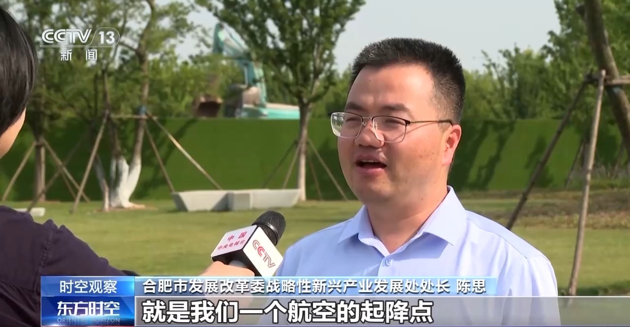 合肥市发展改革委战略性新兴产业发展处处长陈思:我身后正在建的就是我们一个航空的起降点,占地大概在1600平方左右,大概今年9月份就会投入运营。建成之后,会有两个起降平台,能保障10到20架左右的电动垂直起降载人航空器的飞行。