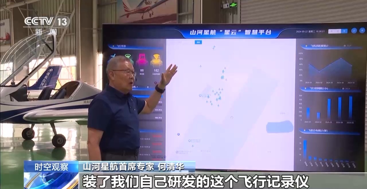 山河星航首席专家何清华:从去年开始,我们销售出去的飞机装了我们自己研发的飞行记录仪,星云智慧平台可以把卖出去的飞机的状态实时反映出来,同时可以传给客户,他的手机上面都可以看得到。