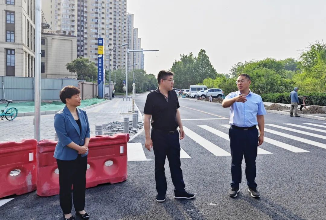 ▲区交通委党组书记、主任吴选辉与街道工委书记徐继锋、办事处主任王海玲调研道路疏堵情况