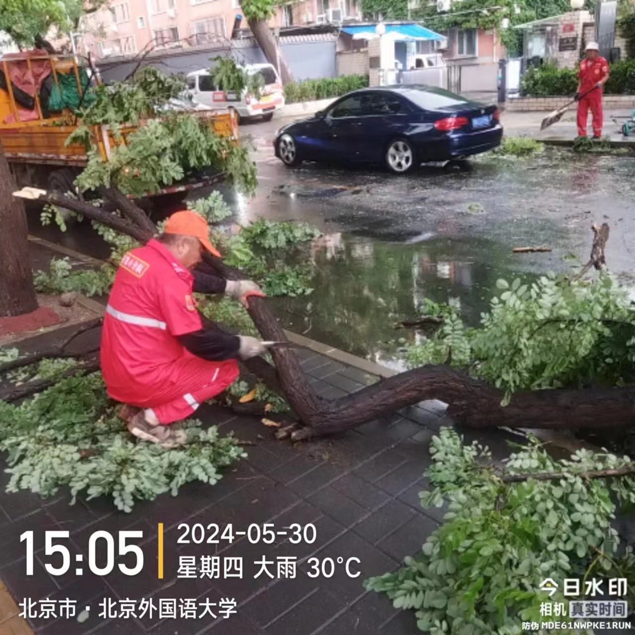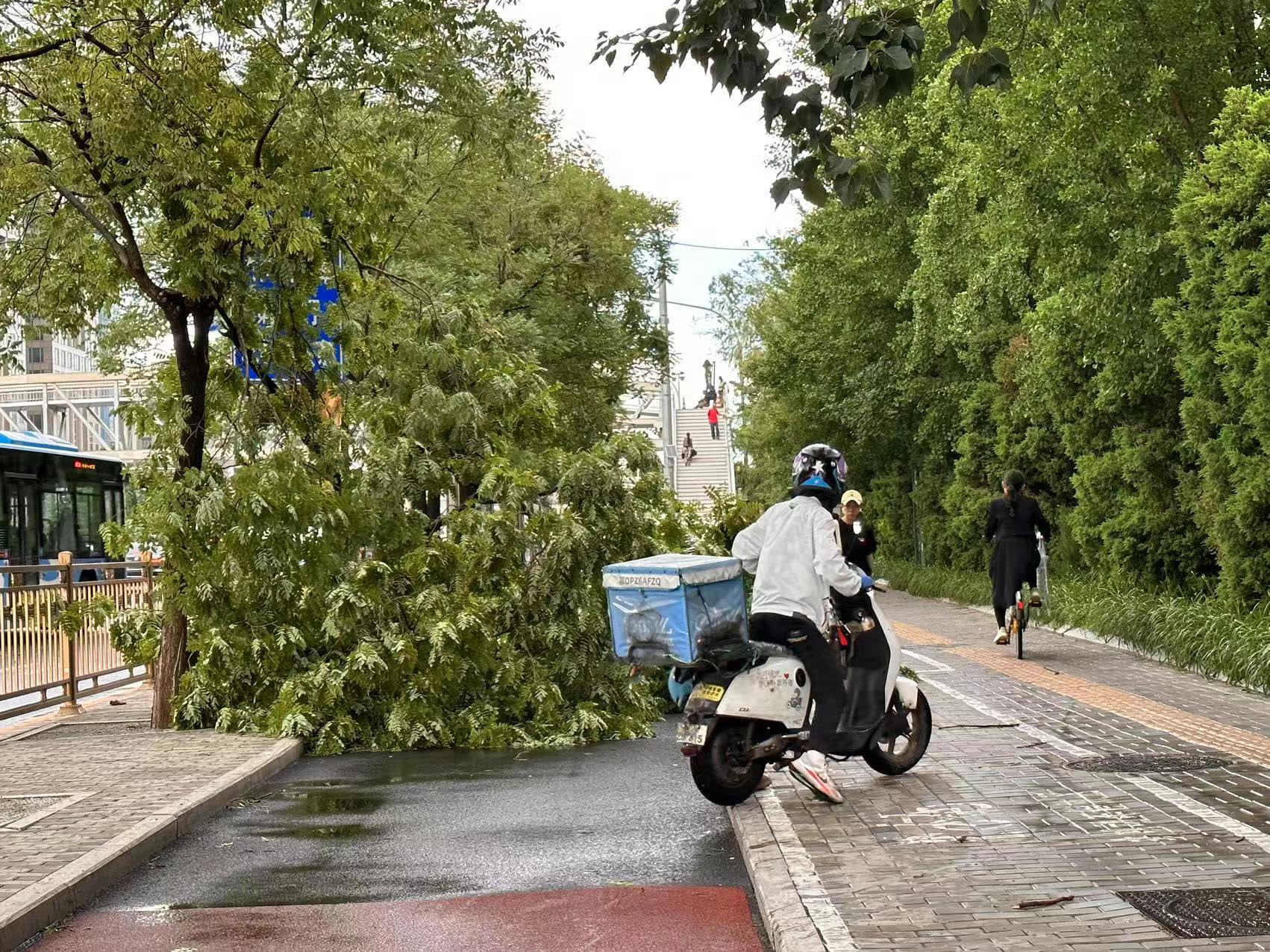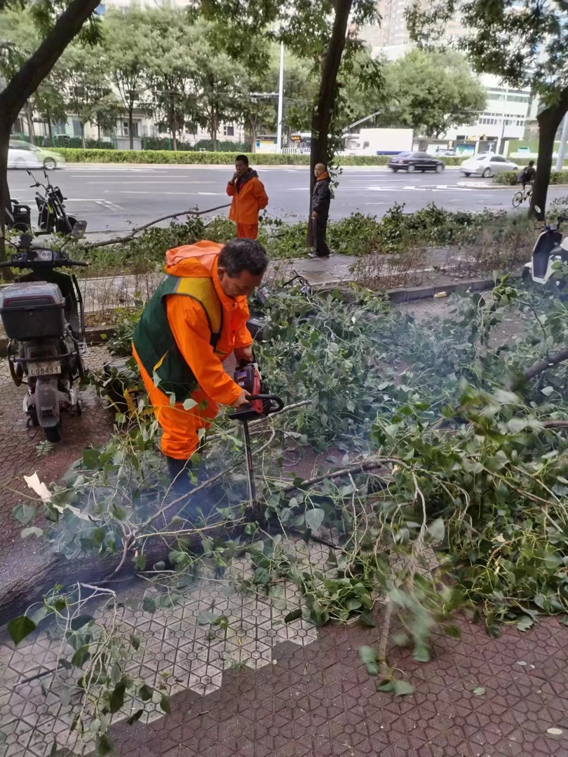 在海淀区西三环北路、民大西路、紫竹院路等地,路边多棵树木被大风折断,部分断枝掉落在人行道、非机动车道。紫竹院街道应急队伍第一时间携带专业工具紧急处置,清理路面,确保行人及机动车通行安全。