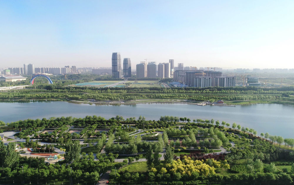 石家庄市滹沱河景色(2022年5月16日摄,无人机照片)。新华社记者 杨世尧 摄