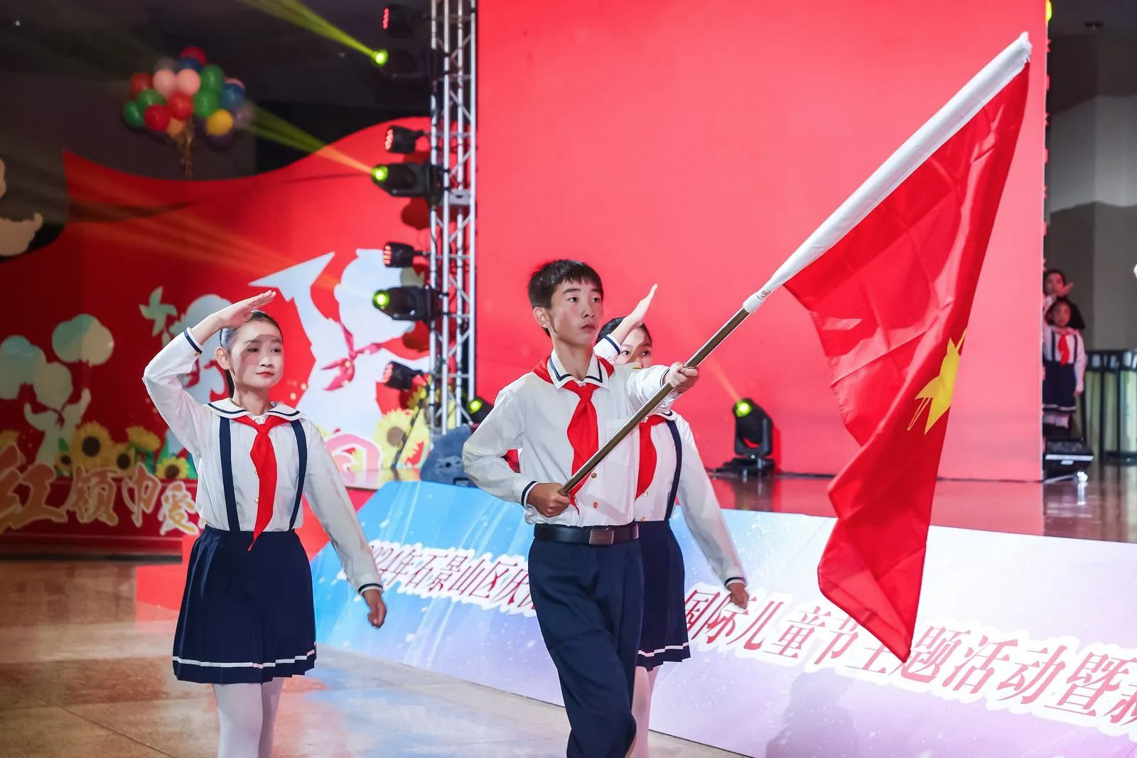 整场活动分为少先队新队员入队仪式和庆祝“六一”节日展演两个部分。