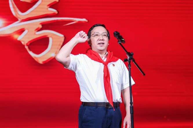 区委常委、宣传部部长申键代表区委、区政府向全区广大少年儿童们致以节日的问候,对广大师生在区域建设大局中展现主人翁的姿态予以了高度认可。向新队员们提出希望和要求,勉励少先队员们牢记习爷爷嘱托,努力成长为理想远大、信念坚定的新时代好少年。