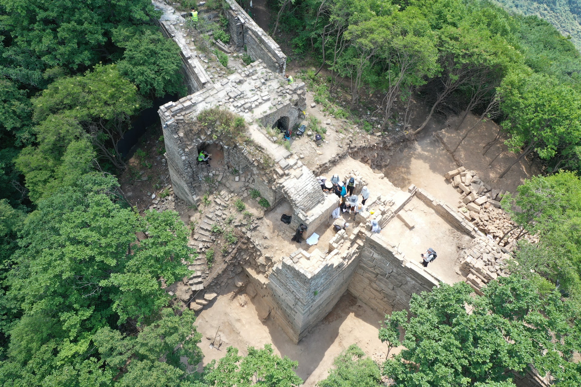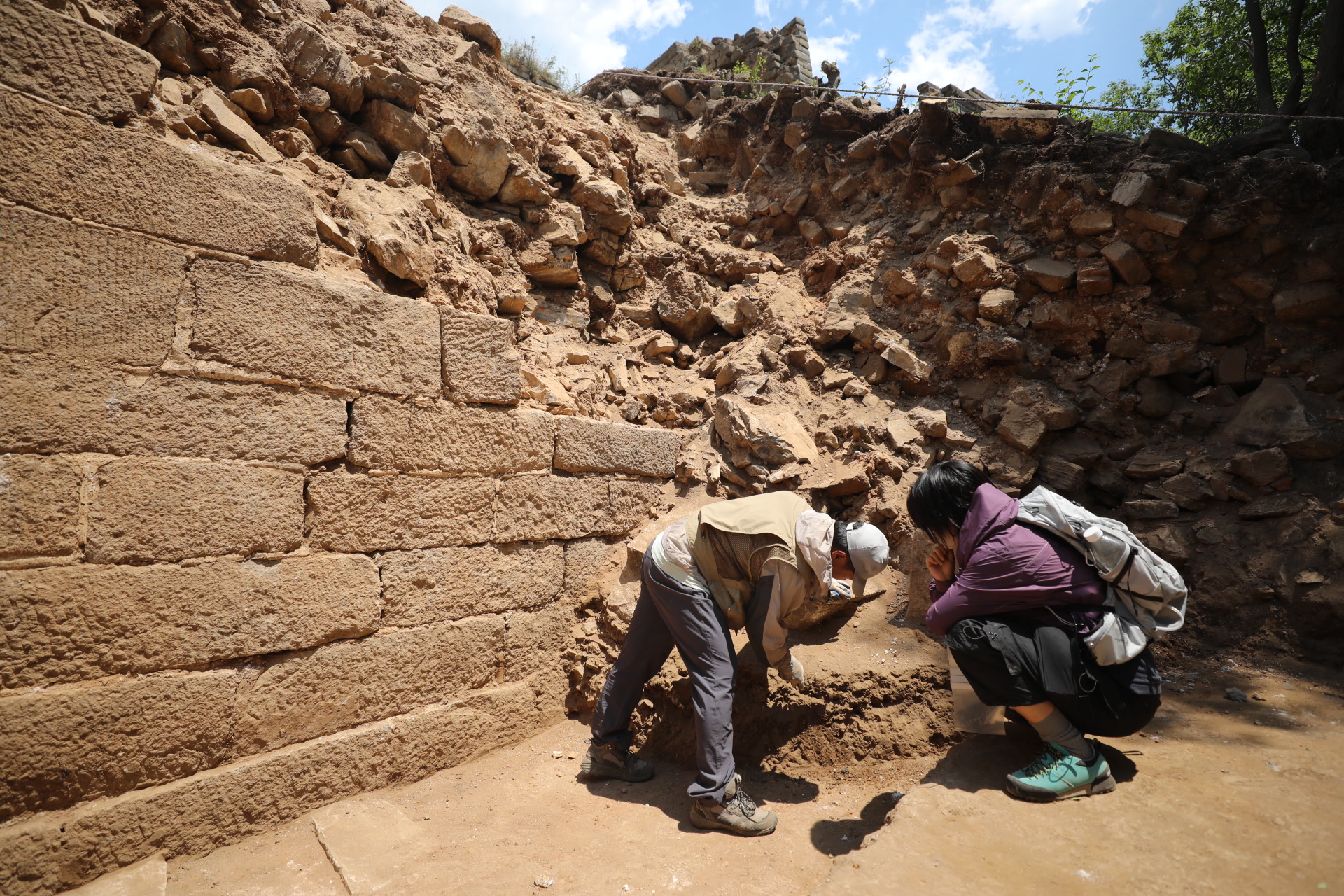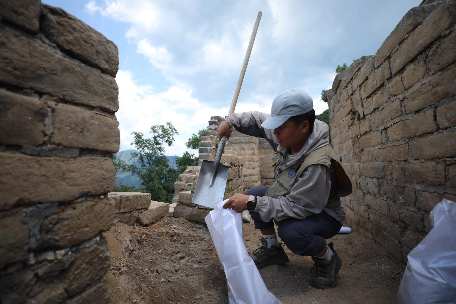 就在几小时前,记者跟随科技考古专家由西栅子村一路向南,由缓到陡爬了近一个半小时的山,来到位于箭扣长城段的怀柔120号敌台采集土样。