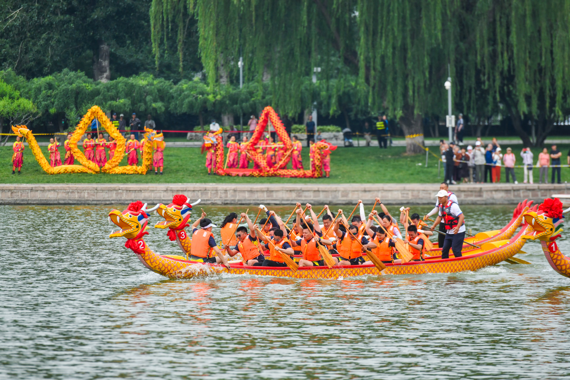 赛龙舟、吃粽子、制香囊、品茶饮……6月5日上午,2024东城区龙潭端午文化节活动在龙潭公园举办。龙潭湖上,一场300米混合直道竞速龙舟赛火热开启,来自东城区体育局等的9支参赛队伍龙舟竞渡,两岸市民们呐喊助威,热闹非凡。