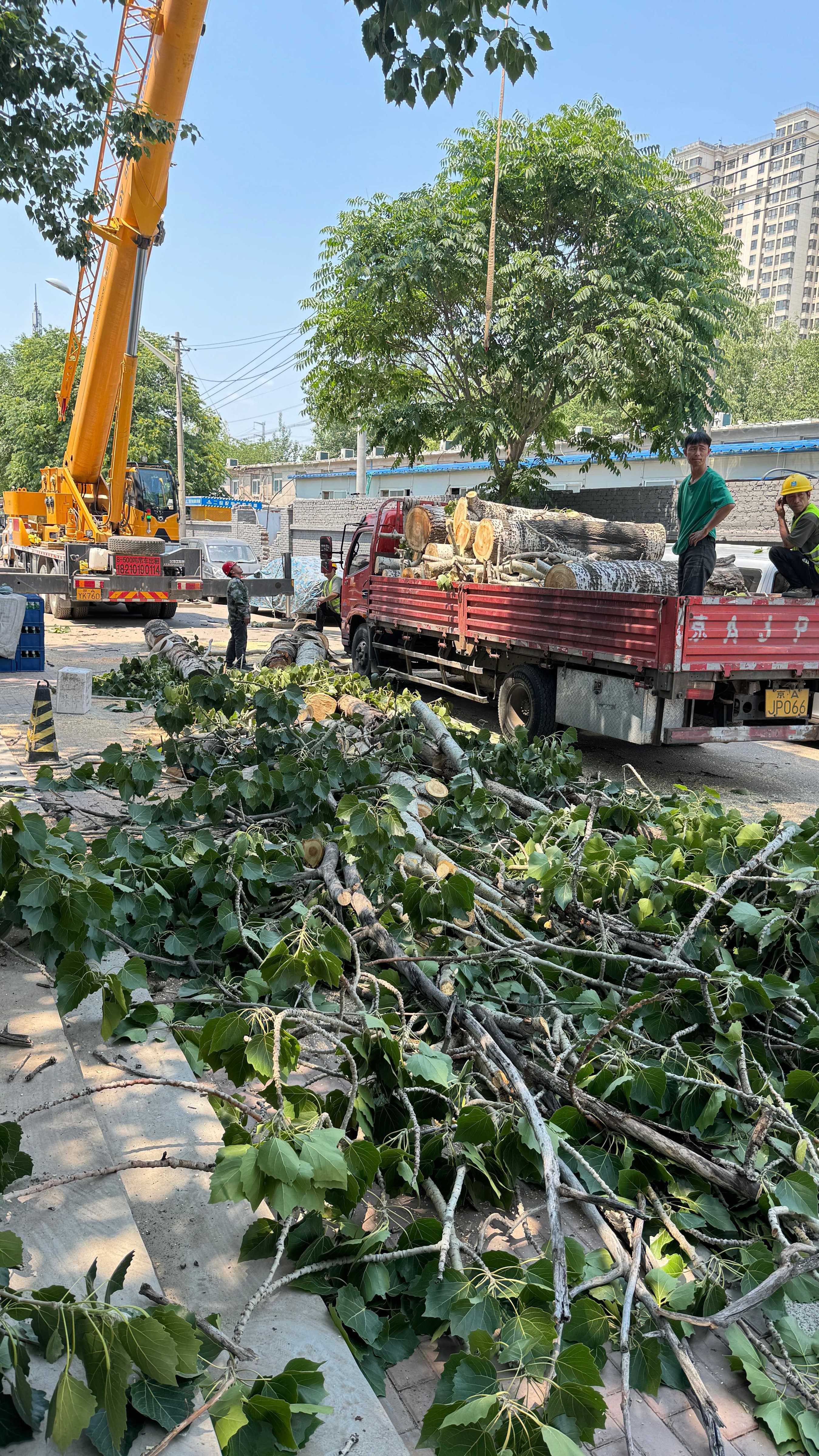 面对这一紧迫情况,社区立即联系街道城乡建设办公室,了解伐树手续办理流程,根据“危树”的实际情况制定砍树清障实施方案,确保万无一失。由于树木位于居村交叉地界,且砍伐许可证需由产权单位办理,社区积极协调纪家庙村,协助办理相关手续,共同推进下一步伐树工作。