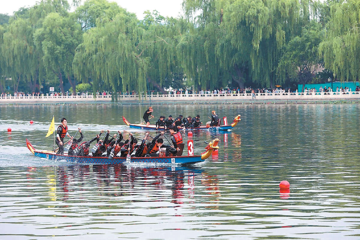 昨天,“河之端”系列文化活动在什刹海举行,运河流经沿线城市(区)组成的龙舟队以赛龙舟的形式,再现百舸争流的繁盛景象。本报记者 甘南 摄