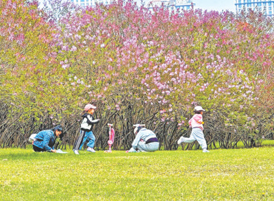 小朋友们在丁香树丛间玩耍。苗丽田摄(人民视觉)
