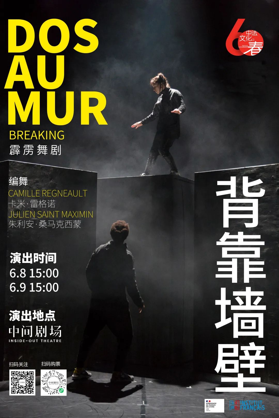 法国舞团YEAH YELLOW 成立于 2012 年,该团舞者赢得过多个法国国内和国际舞蹈冠军头衔。2018 年,YEAH YELLOW的两位核心成员为法国Suresnes Cité Danse 音乐节 (苏雷斯尼城市舞蹈节)编排了代表作作品《背靠墙壁》“DOS AU MUR”。而后,两位主创带着这个作品走遍了世界各地,于中法建交60周年之际来到中国,促进中法两国的文化艺术交流。