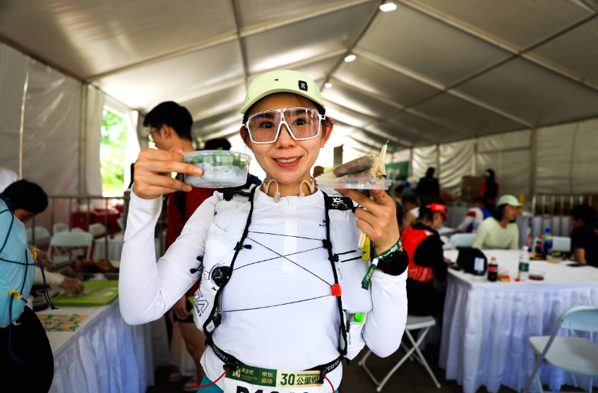 在完赛区,网红打卡摊位“长桌宴”上摆放着热气腾腾的火盆锅、豆腐脑、豆浆等当地特色美食,“醉美厨娘”正在热情地给参赛选手们端上一碗碗可口美食,缓解完赛的疲惫,现场充满浓浓烟火气。现场还可以体验包粽子、香包制作等端午文化活动,同时设置了“乡村奥莱”集市,可购买“井庄礼物”伴手礼。