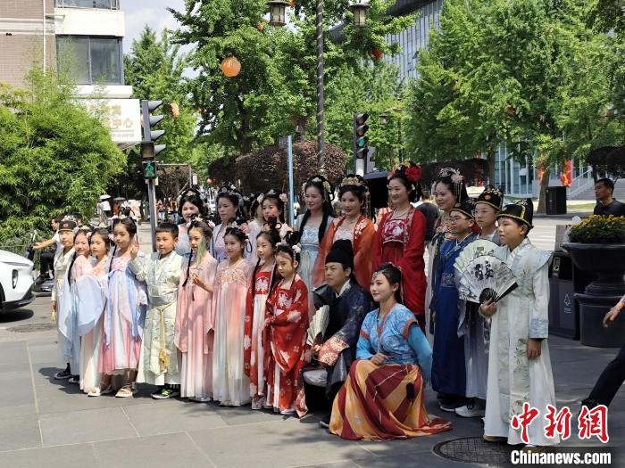 6月7日,人们在西安街头身着汉服出游。宋宇航 摄
