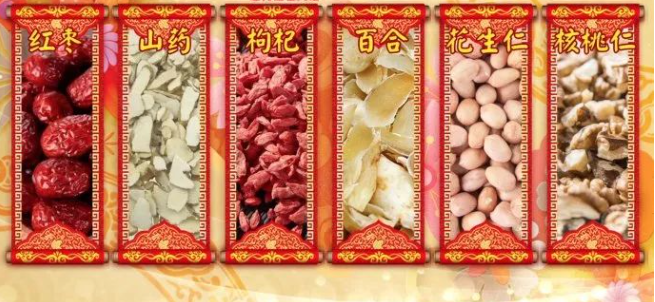 【食材】红枣、山药、枸杞、百合、花生仁、核桃仁各5-10克