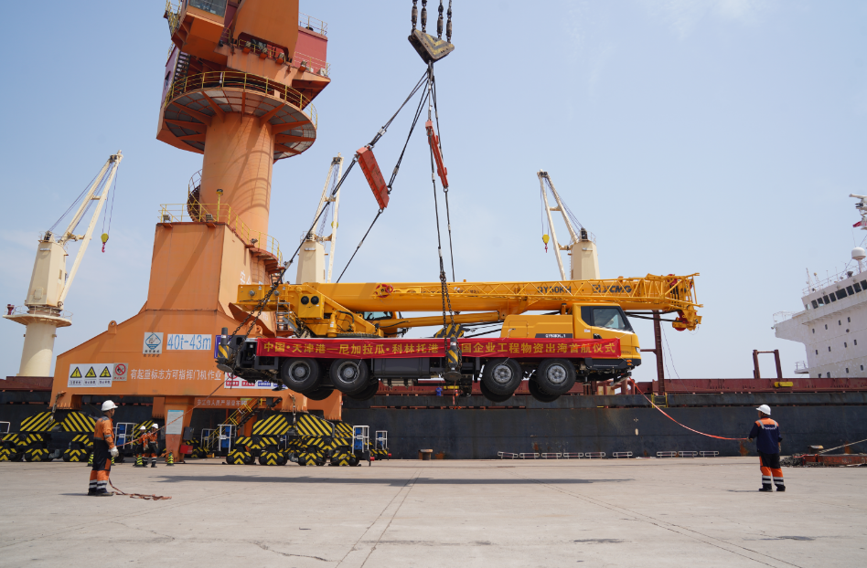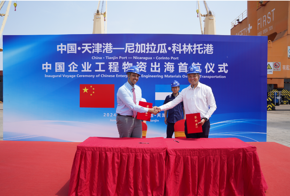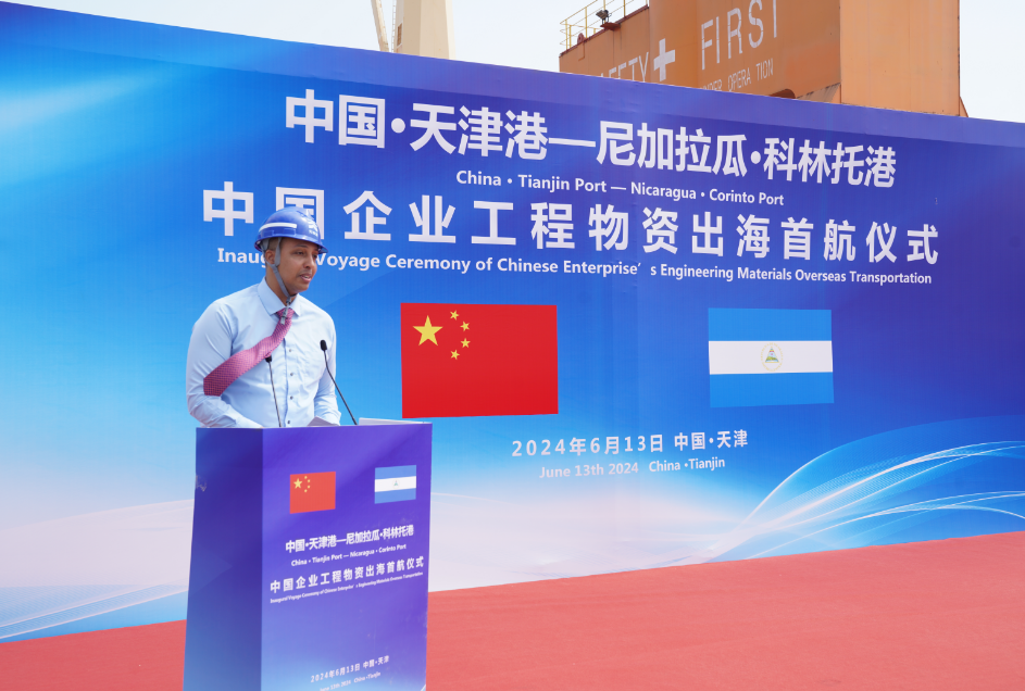6月13日,中国·天津港-尼加拉瓜·科林托港中国企业工程物资出海首航仪式在天津港大沽口港区13号码头举行。尼加拉瓜蓬塔韦特国际机场改扩建项目所需首批2000吨钢材、设备和工程车辆陆续吊装上船,作业完成后,“阳光财富”轮将出发直达尼加拉瓜科林托港。此次直航海运服务,为我国央企参建尼加拉瓜工程项目提供了海运便捷通道。
