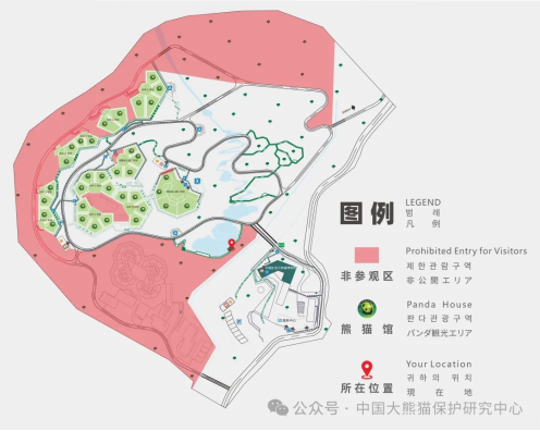三、未经许可,禁止进入非参观区,禁止在任何区域使用照相机、摄像机、手机、无人机等设备对非参观区进行影像记录和直播等。(注:非参观区含饲养工作区、隔离检疫区、办公区等,见图)