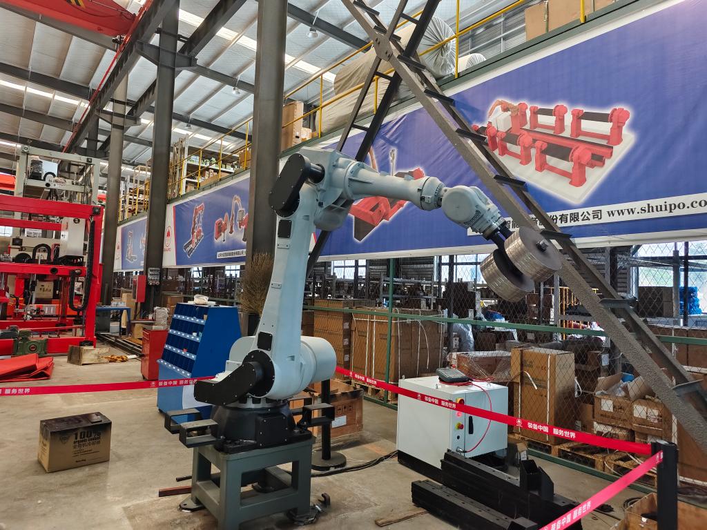 济宁市梁山县一家装备制造企业自主研发的工业机器人。新华社记者邵鲁文 摄
