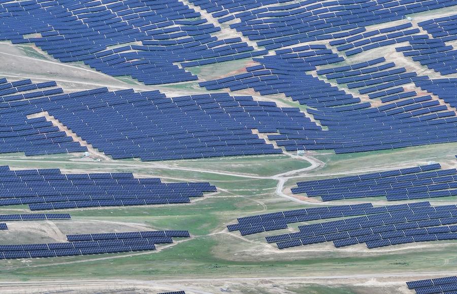 6月11日拍摄的位于新疆伊犁哈萨克自治州的中国绿发尼勒克400万千瓦风电光伏项目(无人机照片)。新华社记者 赵戈 摄
