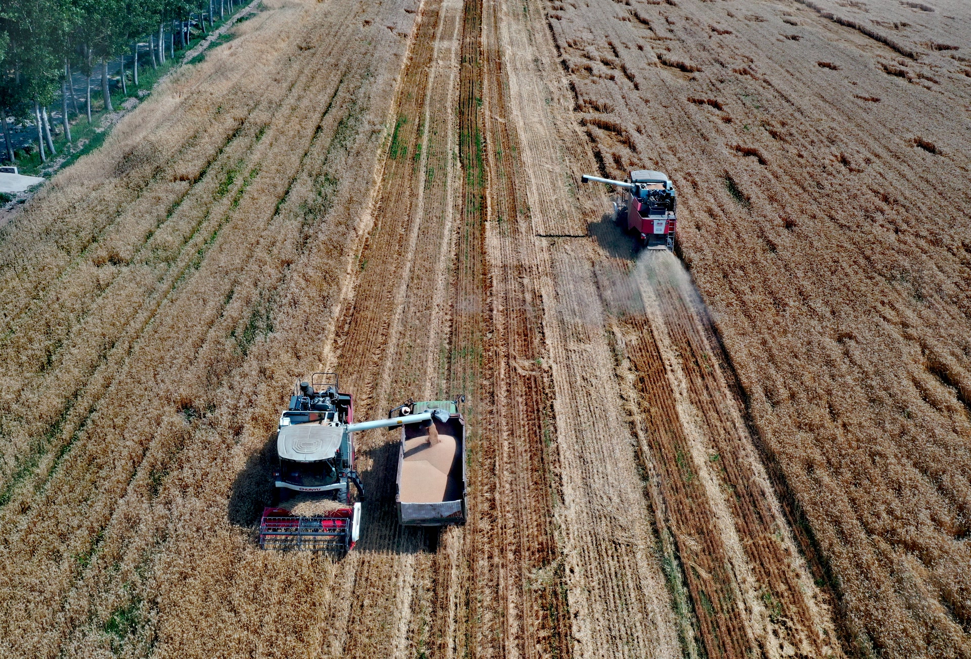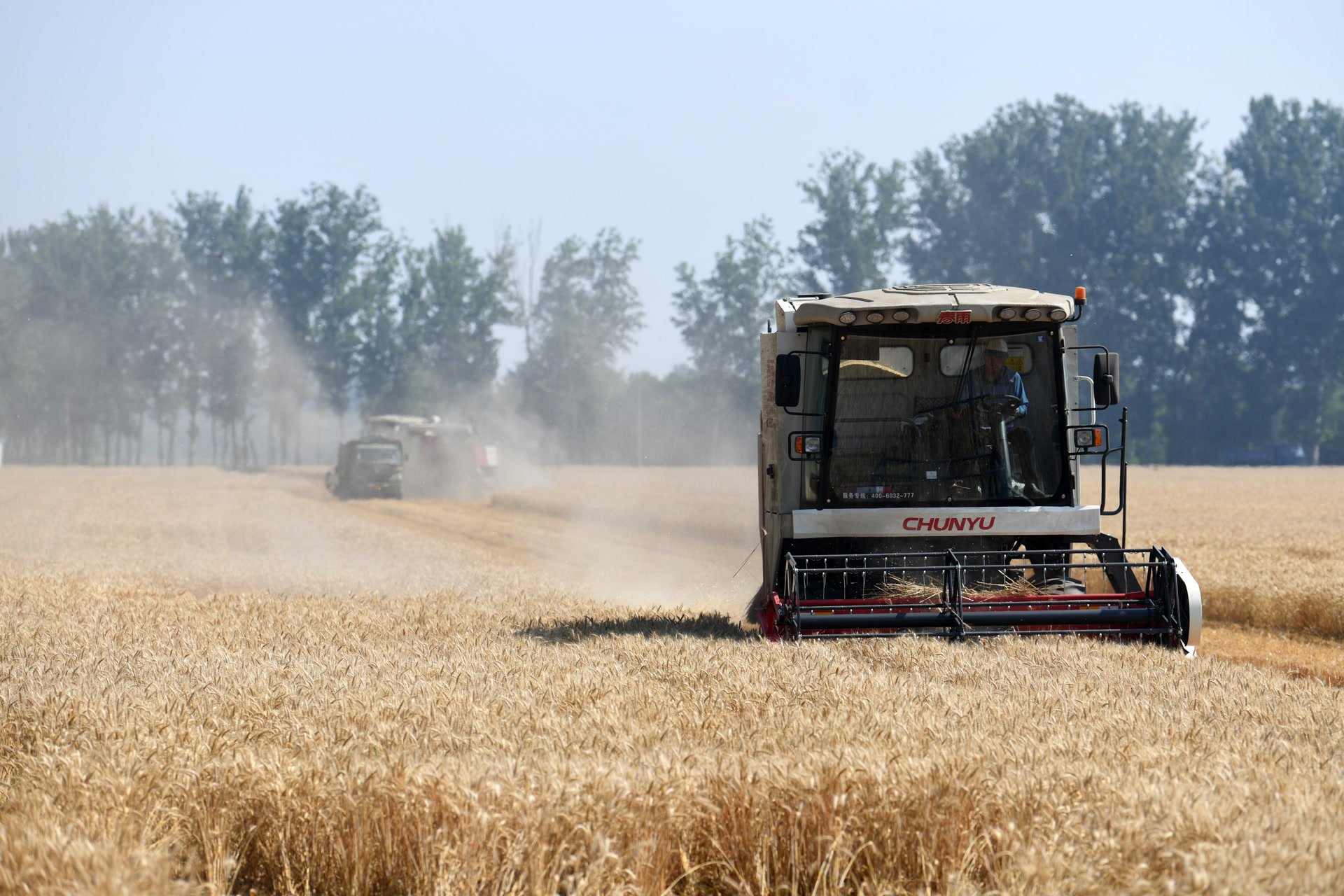 一大早,密云区河南寨镇平头村响起了收割机的隆隆声。金黄色的麦田一眼望不到边,8台收割机同时作业,预计将用三到四天时间完成全镇5000亩小麦的抢收工作,确保夏粮颗粒归仓。