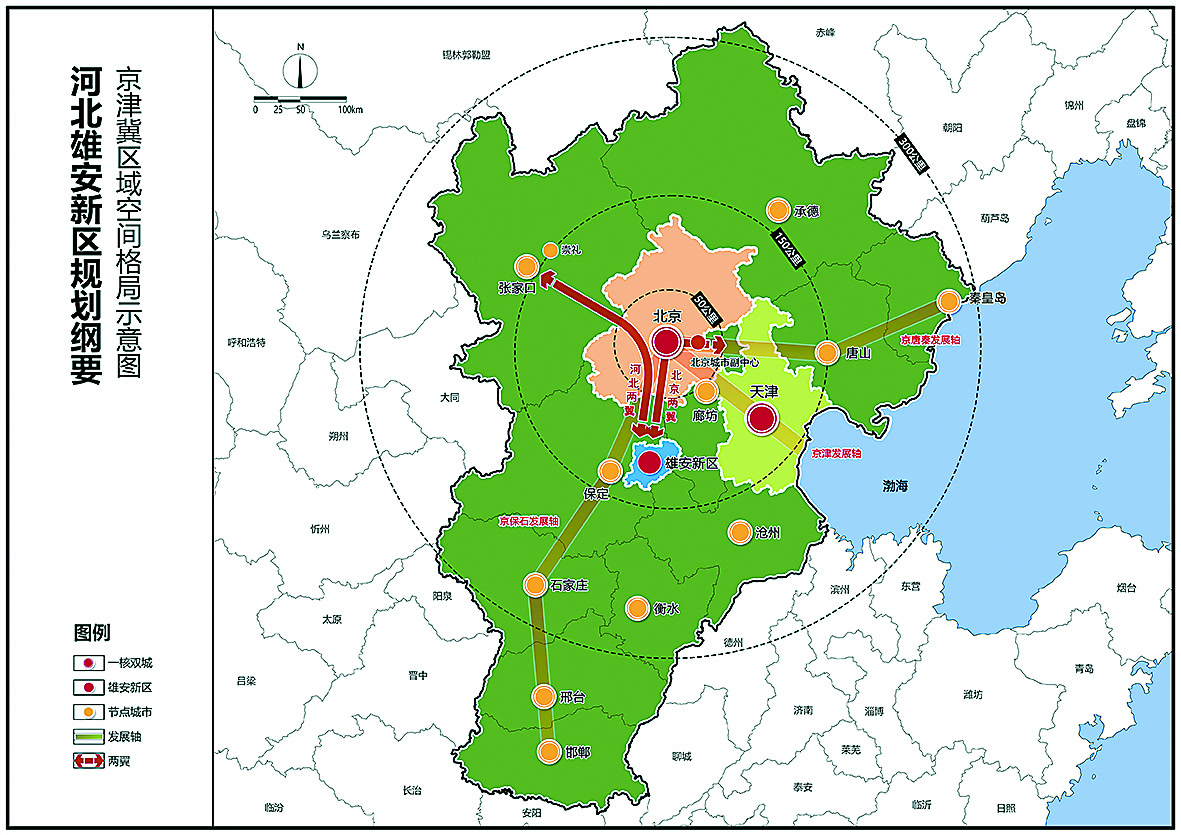 新中国成立后,北京成为中华人民共和国首都。在接收旧政权,从战时需要向和平建设发展的过程中,以首都为核心的当代城市布局在探索中形成。撤销察哈尔、热河两省,张家口、承德划归河北,强化了首都周边城市的功能布局,提升了对首都的拱卫与供给能力。天津作为北方第一大工业城市和重要港口城市,在河北省省辖市、中央直辖市之间的变更,也反映了其作为北京经济辅助城市对首都功能的保障。