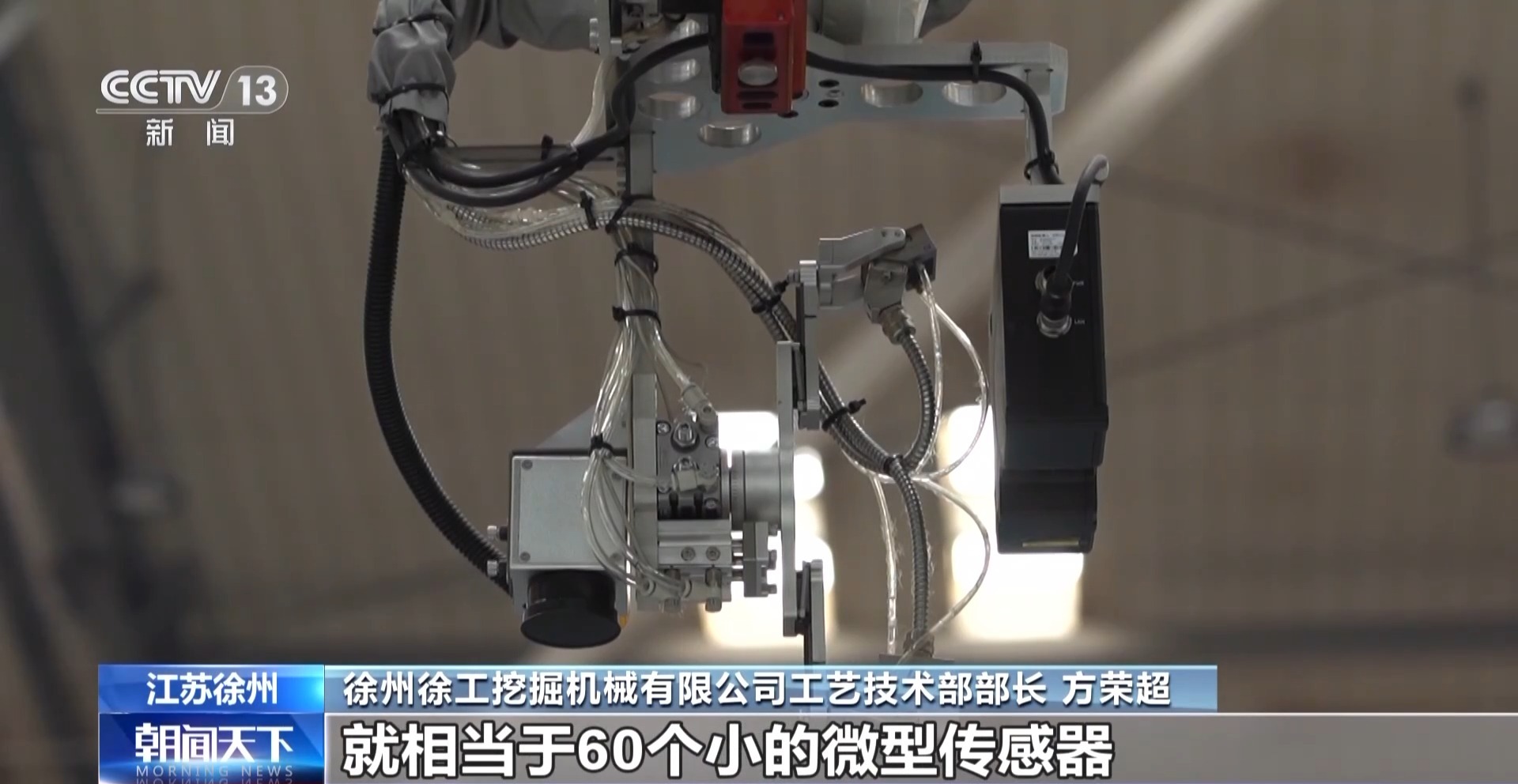 徐州徐工挖掘机械有限公司工艺技术部部长 方荣超:小小探头里面集成了60多个晶片,就相当于60个小的微型传感器,能够对我们的焊缝内部质量进行实时动态检测。