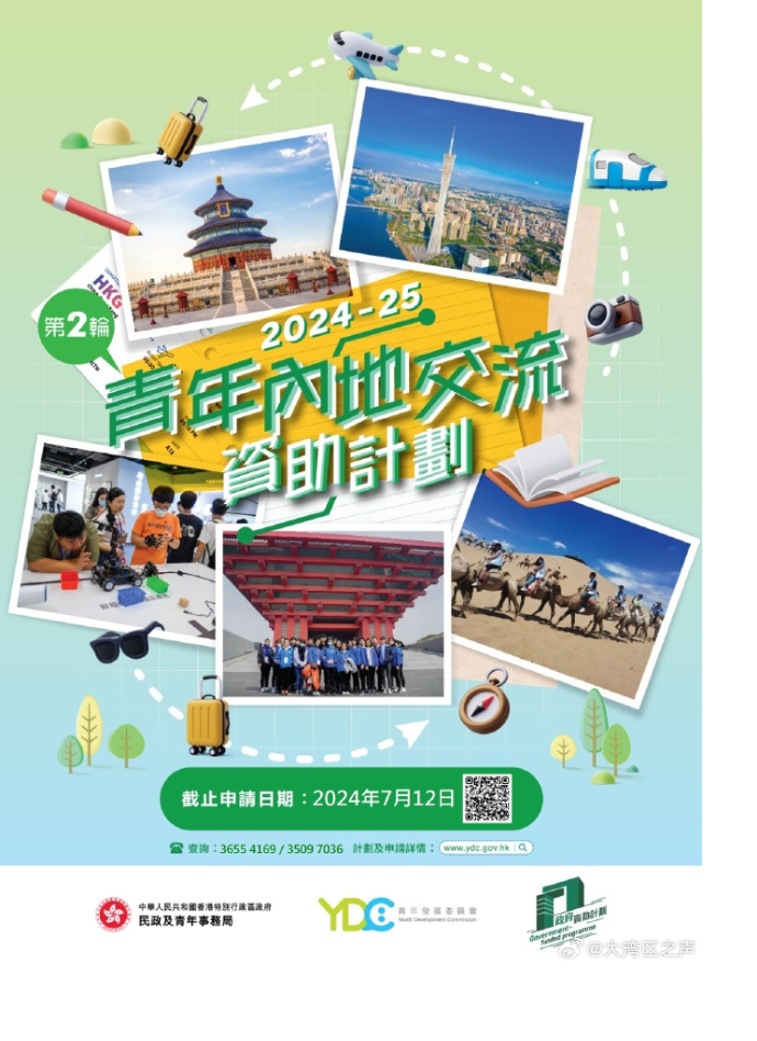 香港特区政府今日(20日)公布,2024至25年度第二轮青年内地交流资助计划今日起接受合资格非政府机构申请,7月12日截止。特区政府民政及青年事务局、青年发展委员会通过该计划资助非政府机构举办青年内地交流项目,促进香港青年认识和了解国情,加强与内地人民交流,从而提升他们的国民身份认同。