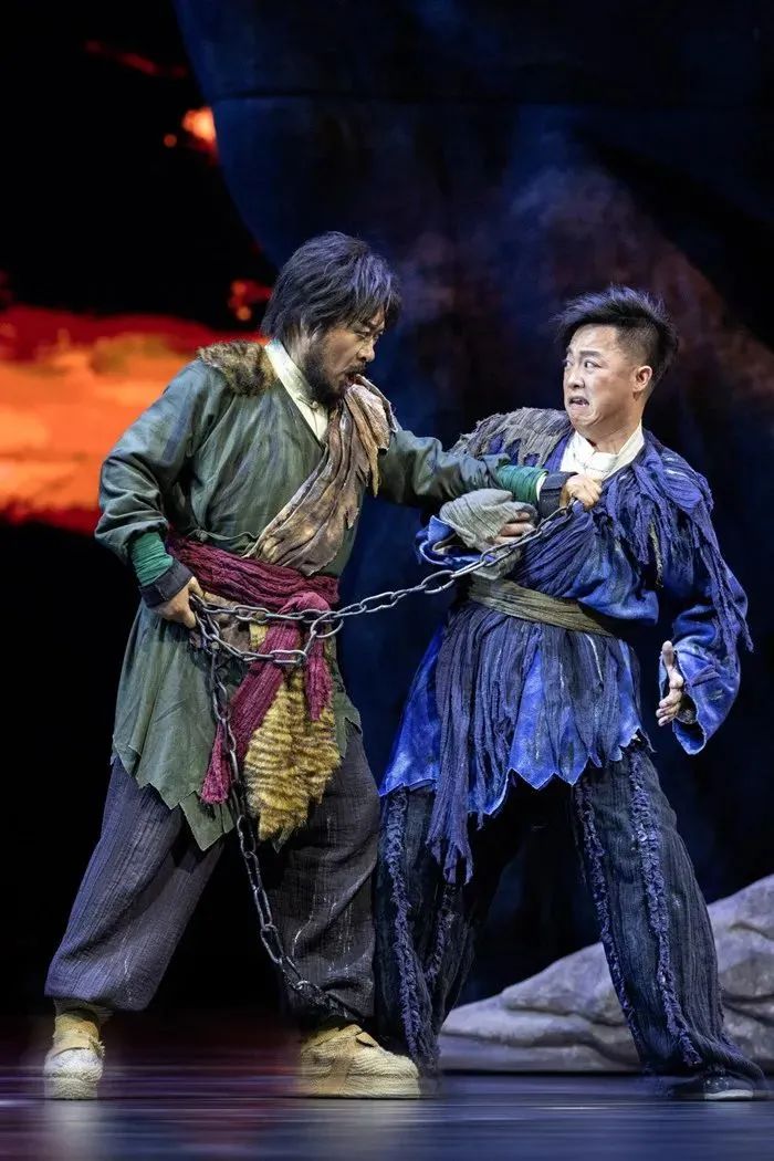 除薛皓垠之外,《原野》此番的二度创作阵容亦令人刮目相看。高鹏、尤泓斐、郝苗、赵明、李想等几位演员的表演,均给笔者留下了颇深的印象,尤其是饰演仇虎的高鹏。高鹏在该剧的表演堪称“戏”“歌”双全。笔者对其以往的印象还停留在歌剧《白毛女》和《江姐》中的杨白劳、沈养斋两个角色上。此次不禁发现,刚过不惑之年的高鹏竟然是个多面手。