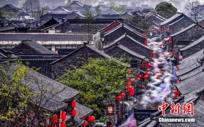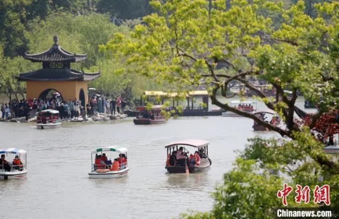 图片瘦西湖景区钓鱼台前人头攒动。扬州市委宣传部供图