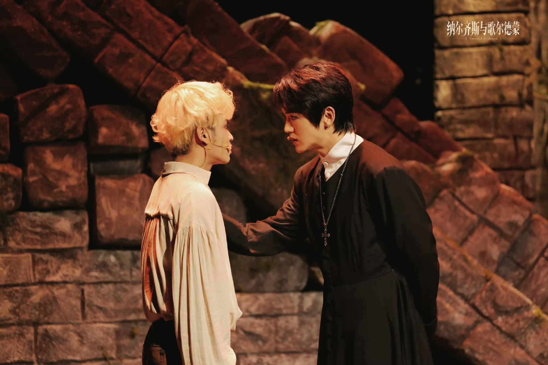 因为有太多思辨性的内容要铺垫,《纳尔齐斯与歌尔德蒙》在上半场偶尔会偏重概念的讲述,少了些鲜活的故事,不如下半场的故事性强。但也可以理解,《纳尔齐斯与歌尔德蒙》的原著是一部哲学气质浓郁的文学作品,带有歌德式的文化追问,为了给没有在西方文化背景中生活的中国观众传递更多信息,这部音乐剧已做出了相当大的努力。