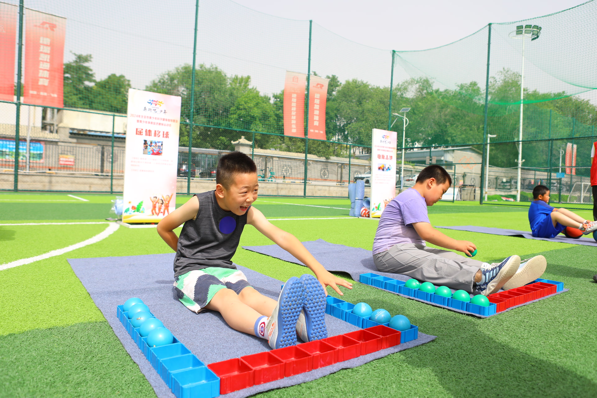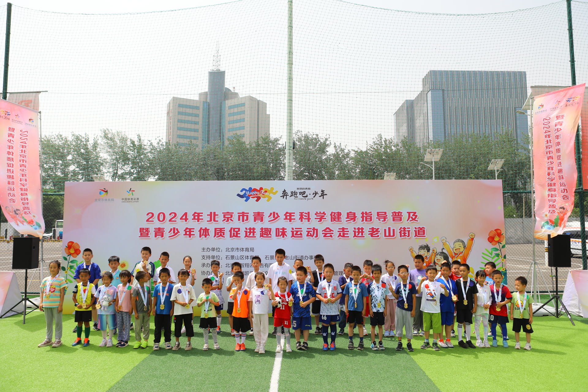 6月22日,“奔跑吧·少年”2024北京市青少年科学健身指导普及暨青少年体质促进趣味运动会在石景山区老山街道德瑞凯通足球公园举行。