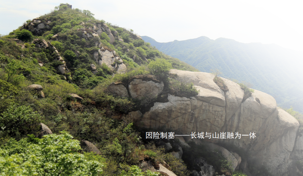 “坐楼”也是折返点,残墙从此处拐弯,越过柳树沟,串起四个敌楼,向关口方向走去。关口西侧崖壁陡峭,城墙紧贴山崖,与东侧明显不同,石条之上,全部用青砖垒砌,似有一种拔地而起之势,越发显得巍峨雄壮。