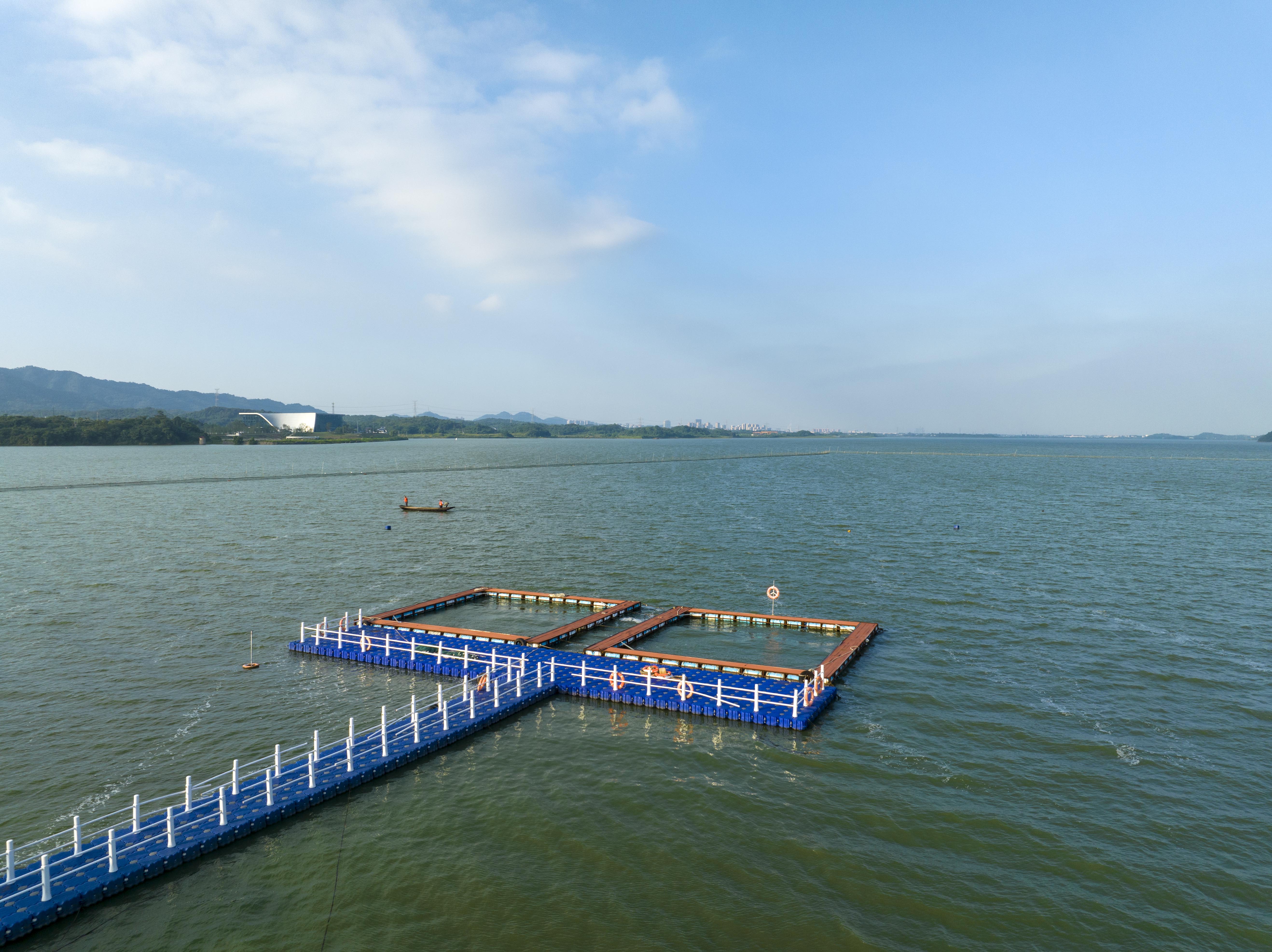 在江西湖口长江江豚迁地保护基地,江豚“欢欢”和“乐乐”在保护工作人员的悉心照料下茁壮成长。