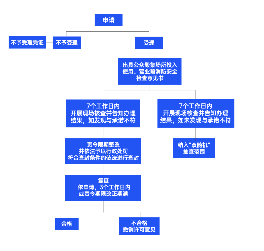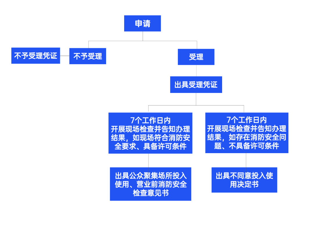 对申请办理消防安全检查的公众聚集场所,消防救援部门应当自受理之日起七个工作日内进行检查、核查并告知办理结果。