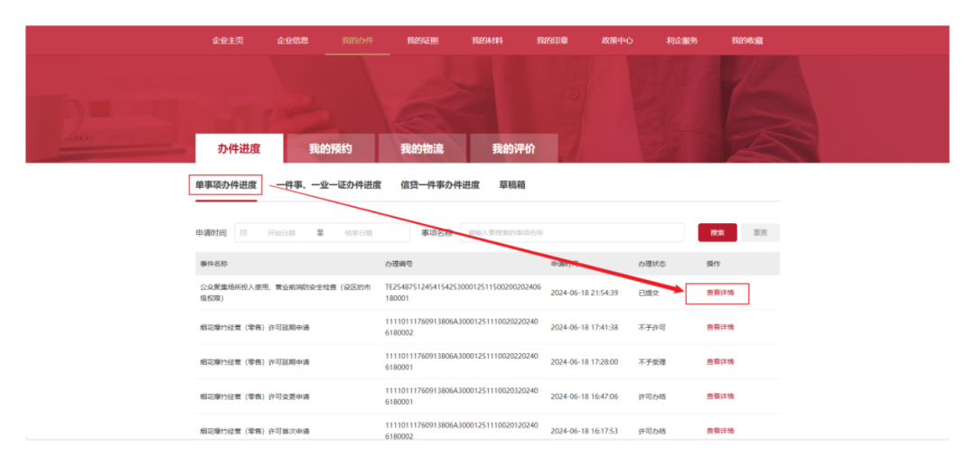 申请人可以通过政务网平台“办件进度”应用查询当前办事进度;办结完成后可以实时查看开业前消防安全检查意见书。