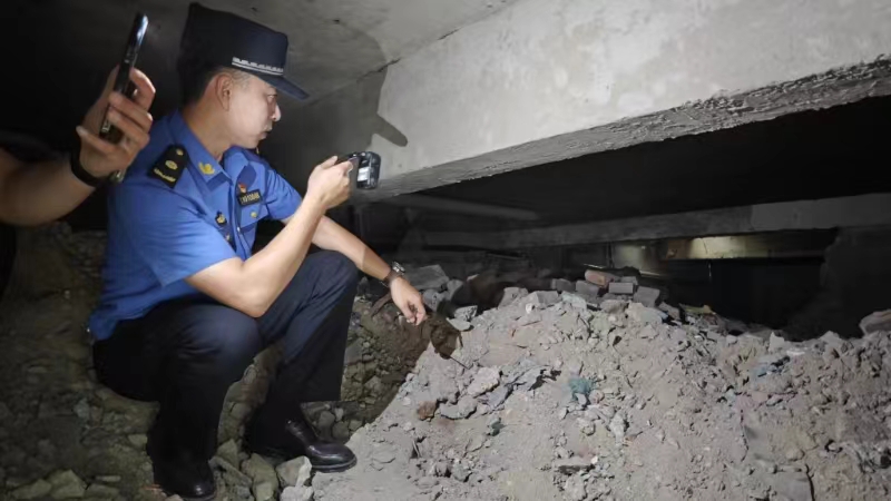 据张傲介绍,经查实,当事人在2011年已因违规挖掘地下室被强制回填过,此次属于二次违法。当事人在未取得任何审批手续的情况下,采取“蚂蚁搬家”的方式私自挖掘地下室,试图逃避执法部门执法检查。然而,这种行为不仅破坏了房屋结构,也严重影响了周边居民的居住环境。更为严重的是,地下室的建设并未经过专业设计和施工,从挖开的洞口可以看到地上与地下仅为4厘米左右的钢筋水泥板面相隔,存在极大的安全隐患。