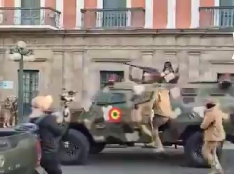当地媒体报道称,当天,玻利维亚总统府周边广场出现非正常军队调动,随后一些军人和坦克包围了总统府。苏尼加称,他将在占领总统府后接管政府并组建新内阁。