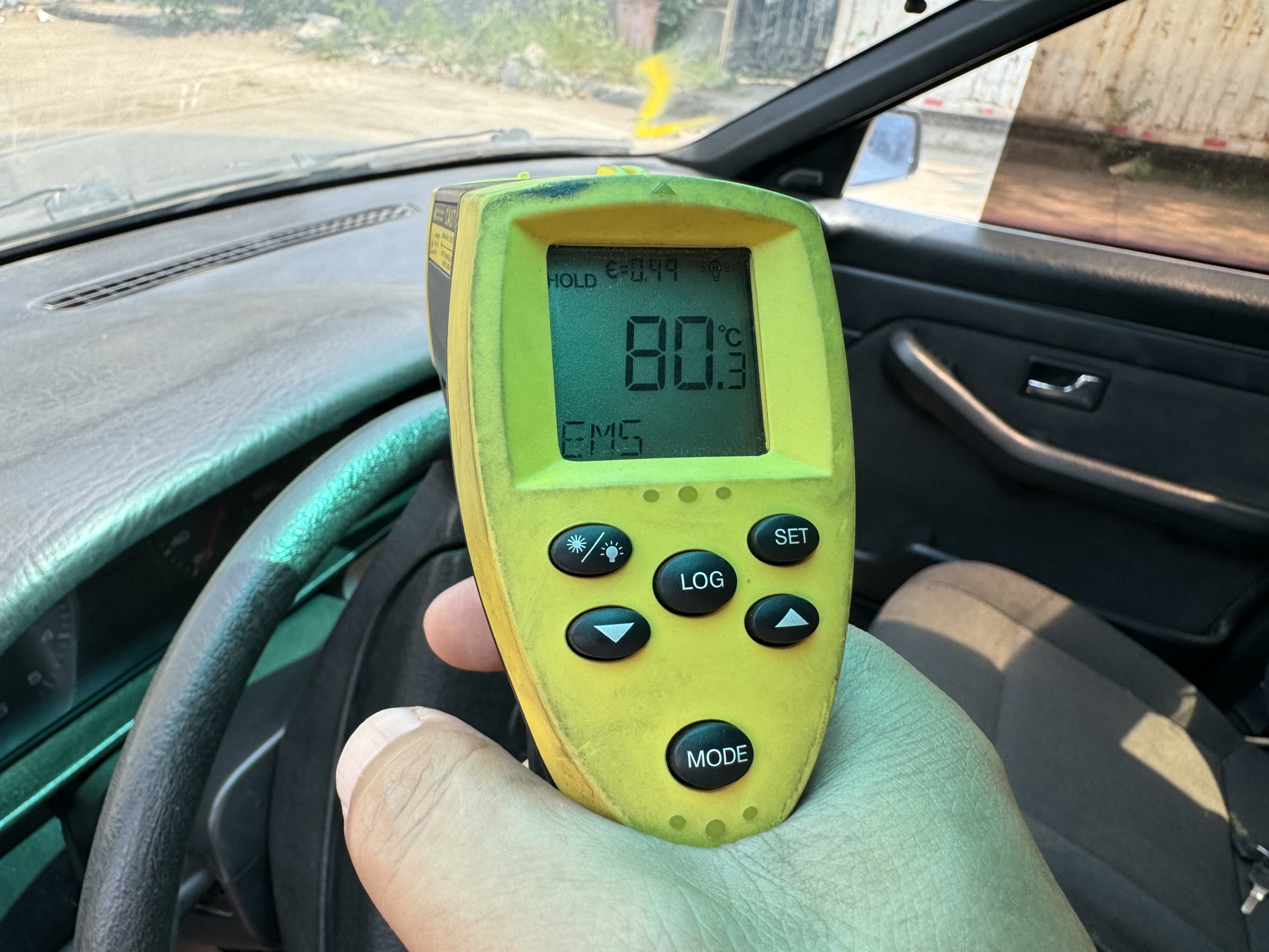 6月28日,北京最高气温36摄氏度,下午2点多,迎来一天中最热的时间。在北京市天交报废汽车回收处理有限责任公司院内,没有遮挡的水泥地面,在太阳炙烤下变成一个“烤盘”。停在院内的一辆轿车是当天实验的道具,经消防员测量,其车内温度达到80.3摄氏度。